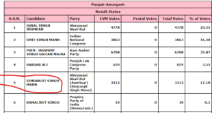 Read More »ਸਿਮਰਨਜੀਤ ਸਿੰਘ ਮਾਨ ਏਨੇ ਵੱਡੇ ਫਰਕ ਨਾਲ ਚੱਲ ਰਹੇ ਹਨ ਪਿੱਛੇ-ਦੇਖੋ ਤਾਜ਼ਾ ਖ਼ਬਰ…………
