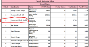Read More »ਮਨਪ੍ਰੀਤ ਬਦਲ ਏਨੀਆਂ ਵੋਟਾਂ ਨਾਲ ਆਪ ਪਾਰਟੀ ਤੋਂ ਪਿੱਛੇ-ਦੇਖੋ ਤਾਜ਼ਾ ਖ਼ਬਰ…..