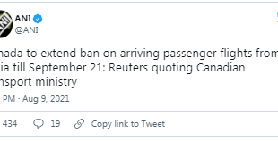 ਸੰਘੀ ਆਵਾਜਾਈ ਮੰਤਰਾਲੇ ਨੇ ਸੋਮਵਾਰ ਨੂੰ ਇੱਕ ਬਿਆਨ ਵਿੱਚ ਕਿਹਾ ਕਿ ਕੈਨੇਡਾ ਕੋਵਿਡ -19 ਦੇ ਖਤਰੇ ਦੇ ਕਾਰਨ ਭਾਰਤ ਤੋਂ ਯਾਤਰੀ ਉਡਾਣਾਂ ‘ਤੇ 21 ਸਤੰਬਰ ਤੱਕ ਆਪਣੀ ਪਾਬੰਦੀ ਵਧਾਏਗਾ। ਇਹ ਪਾਬੰਦੀ ਪਹਿਲਾਂ ਵਾਰ 22 ਅਪ੍ਰੈਲ ਨੂੰ ਲਗਾਈ ਗਈ ਸੀ ਅਤੇ ਪਹਿਲਾਂ ਹੀ ਕਈ ਵਾਰ ਵਧਾਈ ਜਾ ਚੁੱਕੀ ਹੈ। ਇਹ ਪਾਬੰਧੀ …